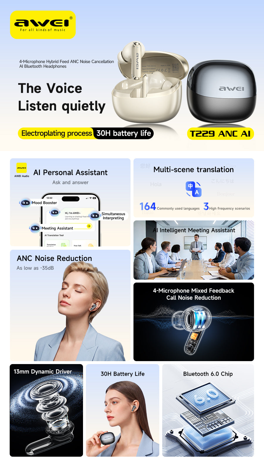 Awei T229 ANC Al Library Bluetooth Headset